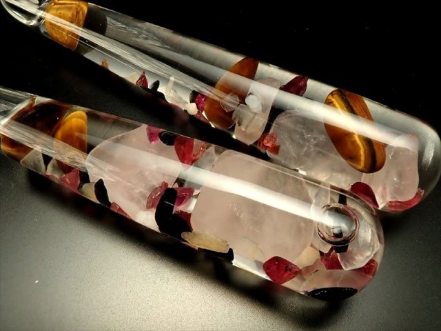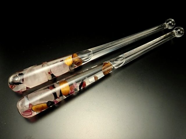 ◆目を惹くオシャレなマドラー◆数種のさざれ入り◆【動画あり】◆ツーソン展示会商品◆激安980円◆天然石入りマドラー◆長さ約16cm◆ガラス製◆