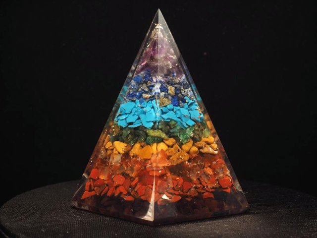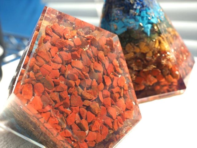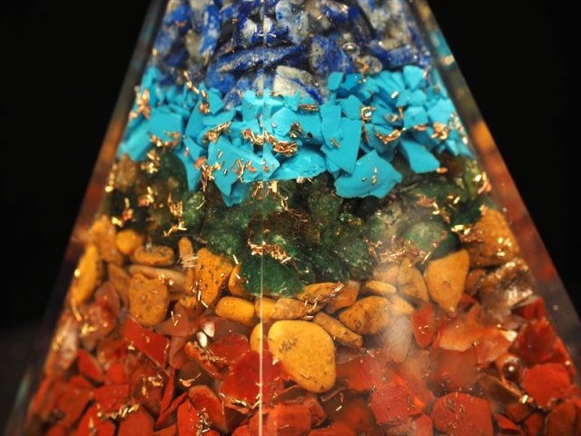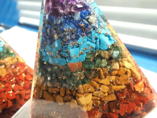 ★大人気スピリチュアルグッズ入荷!★ツーソン展示会商品★風水にも♪★様々な天然石使用★チャクラペンタゴン型 オルゴナイト★サイズ縦約8.5-9.5cm★