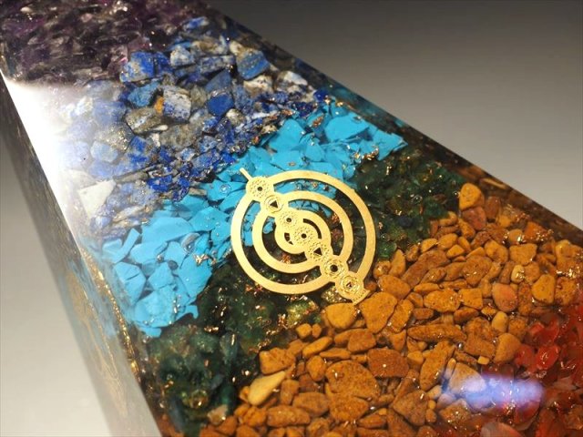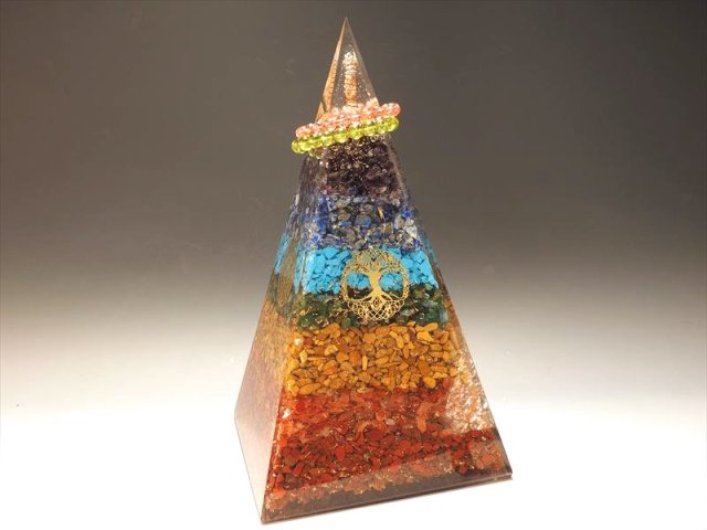 【次回入荷完全未定】★大人気スピリチュアルグッズ入荷!★特大オルゴナイト★限定1点物★神聖幾何学模様★ツーソン展示会商品★チャクラピラミッド型 オルゴナイト★サイズ縦約27cm★