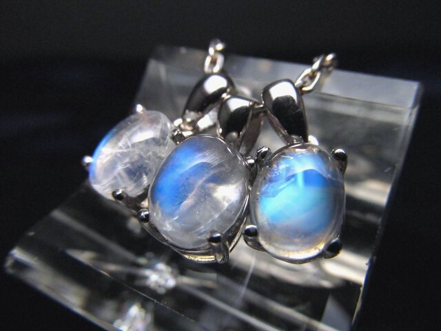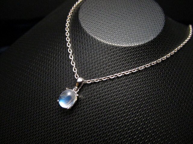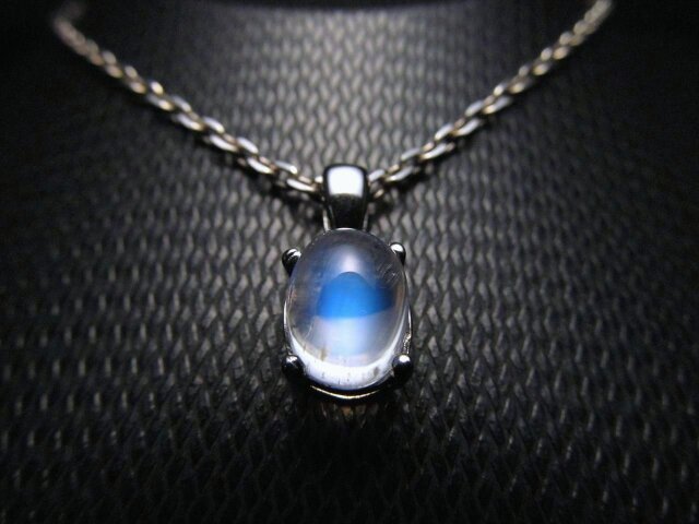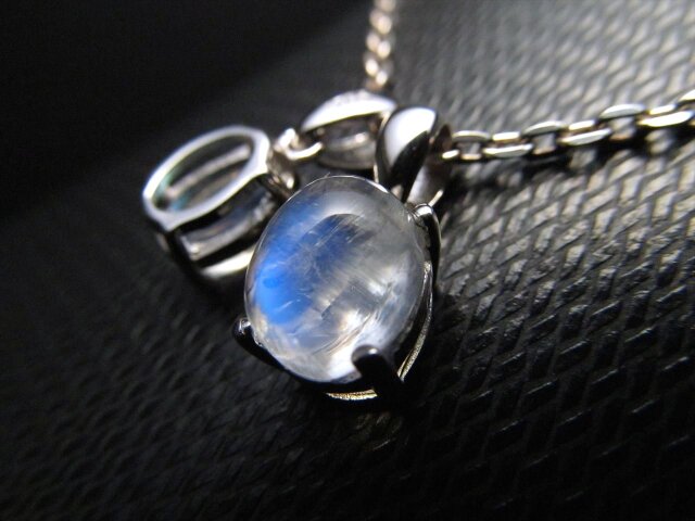 ★極上品質!★透明感抜群!★月光を思わせる神秘的シラー★永遠の愛の象徴★5Aブルームーンストーンペンダントトップ★四つ爪 ぷっくりオーバル型★石サイズ縦約9mm★Silver925★【インド産】