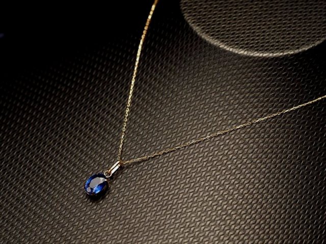 ★18金ゴールド★大切な方への贈り物に♪★超透明宝石質★ロイヤルクラス!濃厚結晶!★勝利を呼ぶ石★サファイアペンダントトップ★オーバルカット型★石サイズ縦約7mm★【ミャンマー産】