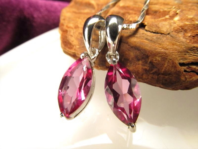 ★極上・宝石質!★超透明!ピンクカラー★11月の誕生石★ピンクトパーズ・ペンダントトップ★マーキス型★Silver925★Lサイズ★石サイズ縦約16mm★【ブラジル産】≪2X1≫