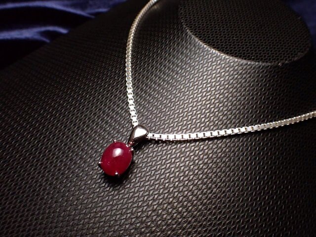 ★超透明★最高級5A!濃い結晶!★7月の誕生石★勝利と情熱を象徴する石★極上ルビーペンダントトップ★ぷっくりオーバル型★Silver925★Mサイズ★石サイズ縦約8.5mm×横約6.5mm★【ミャンマー産】≪2X1≫