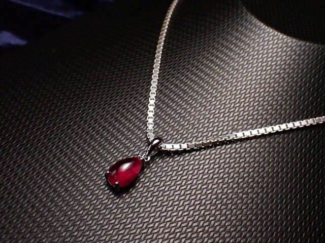 ★超透明★最高級5A!濃い結晶!★7月の誕生石★勝利と情熱を象徴する石★極上ルビーペンダントトップ★ぷっくりドロップ★Silver925★Mサイズ★石サイズ縦約11mm★【ミャンマー産】≪2X1≫