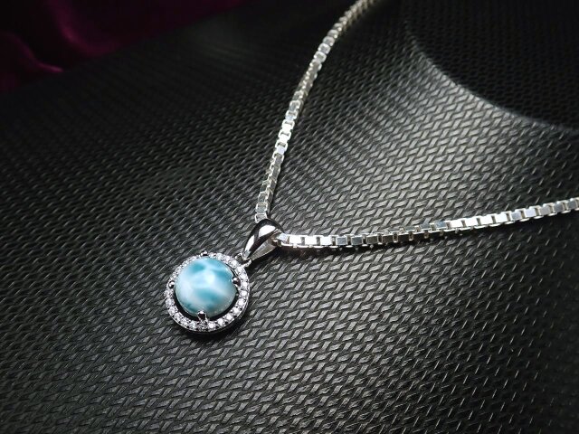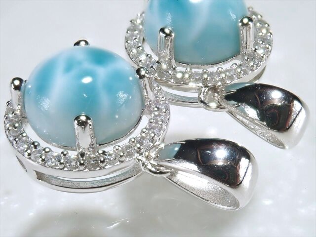◆大人気天然石!◆カリブ海の宝石◆愛と平和の象徴◆ジルコニア装飾◆ラリマー【ブルーペクトライト】ペンダントトップ◆ラウンド◆Silver925◆石サイズ約8mm◆【ドミニカ共和国産】