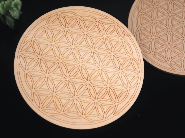 ◆デザインウッドコースター◆お洒落でかわいい◆温もりを感じさせる木製◆小物置きやインテリアにも◆木製デザインコースター◆直径約10cm◆【Dタイプ】