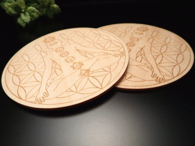 ◆デザインウッドコースター◆お洒落でかわいい◆温もりを感じさせる木製◆小物置きやインテリアにも◆木製デザインコースター◆直径約10cm◆【Eタイプ】