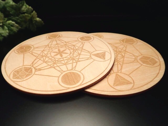 ◆デザインウッドコースター◆お洒落でかわいい◆温もりを感じさせる木製◆小物置きやインテリアにも◆木製デザインコースター◆直径約10cm◆【Fタイプ】