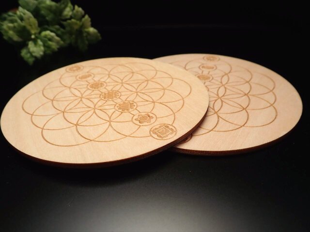 ◆デザインウッドコースター◆お洒落でかわいい◆温もりを感じさせる木製◆小物置きやインテリアにも◆木製デザインコースター◆直径約10cm◆【Gタイプ】