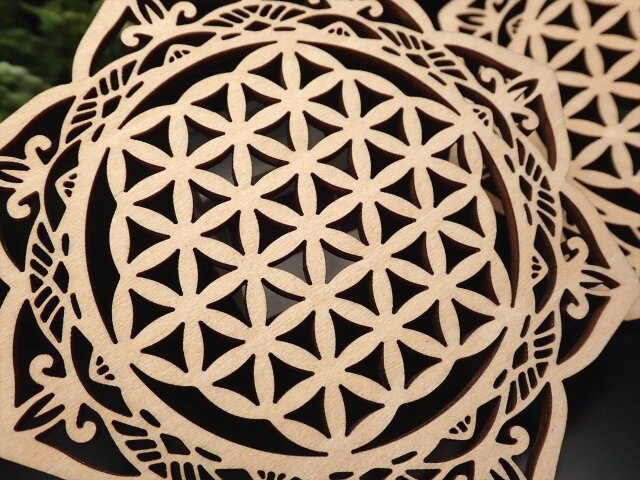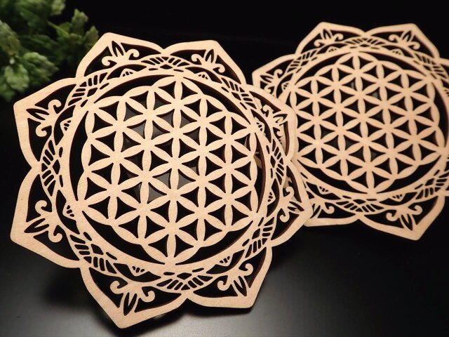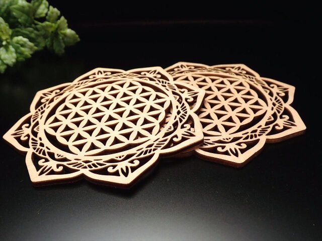 ◆デザインウッドコースター◆お洒落でかわいい◆温もりを感じさせる木製◆小物置きやインテリアにも◆木製デザインコースター◆直径約10cm◆【Hタイプ】