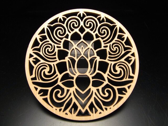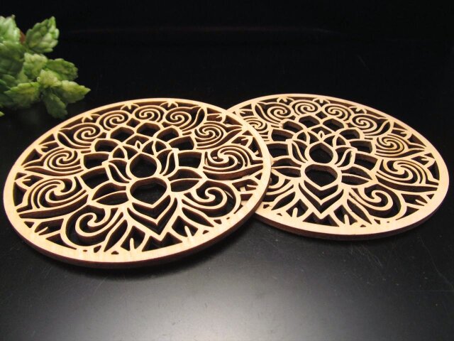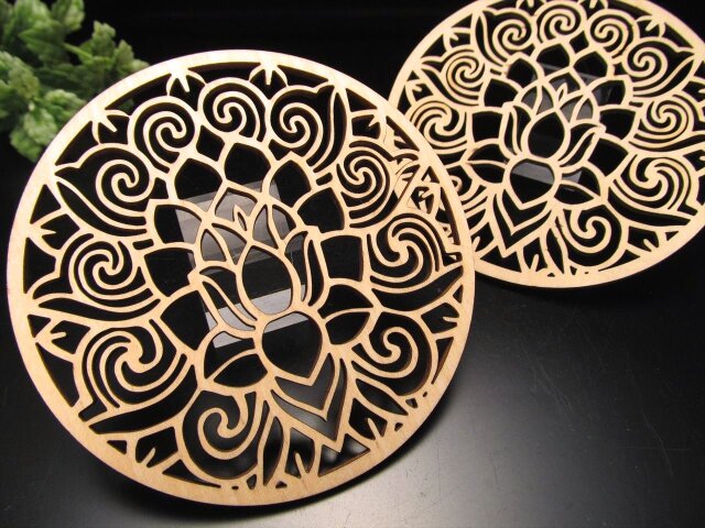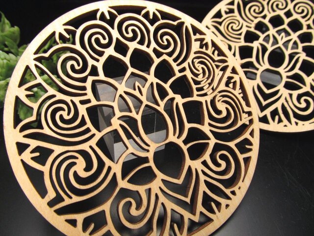 ◆デザインウッドコースター◆お洒落でかわいい◆温もりを感じさせる木製◆小物置きやインテリアにも◆木製デザインコースター◆直径約10.5cm◆【Lタイプ】