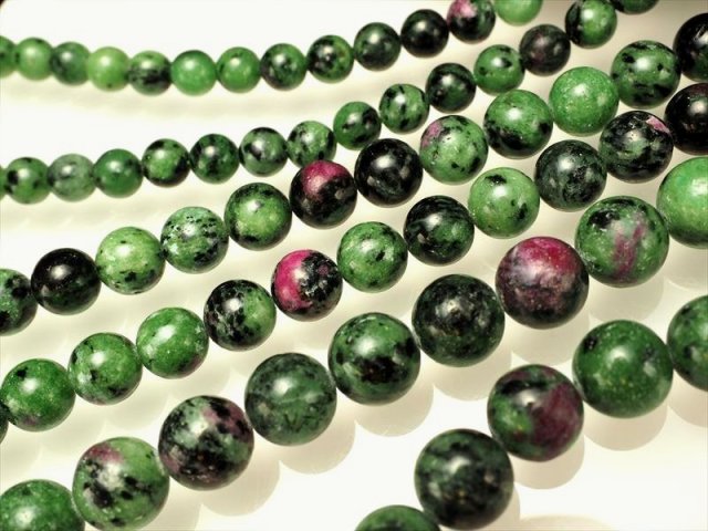 • ★約12mm珠★アニョライト★ルビー入りも★エネルギーを活性化させる石★一連★ゾイサイト【灰簾石】★約37-39cm★【ナイジェリア産】